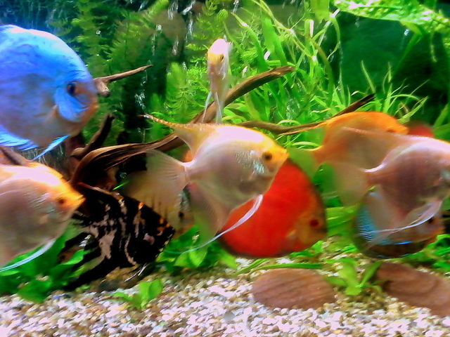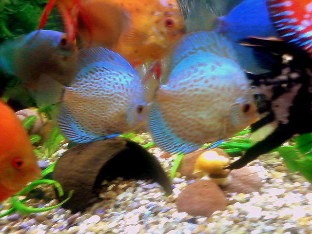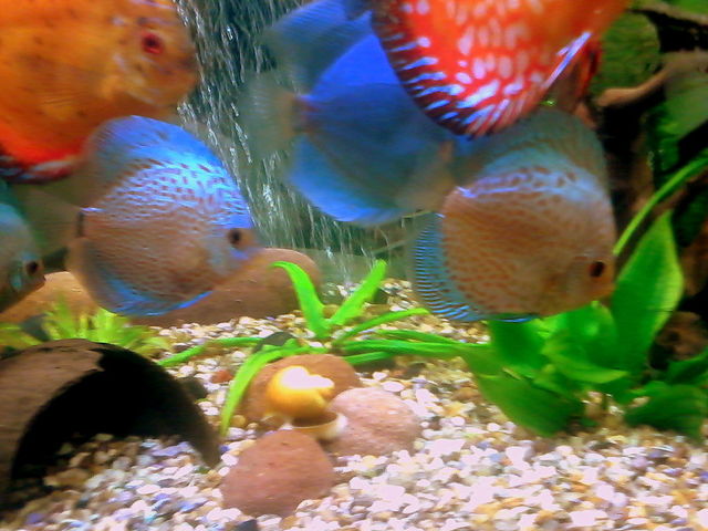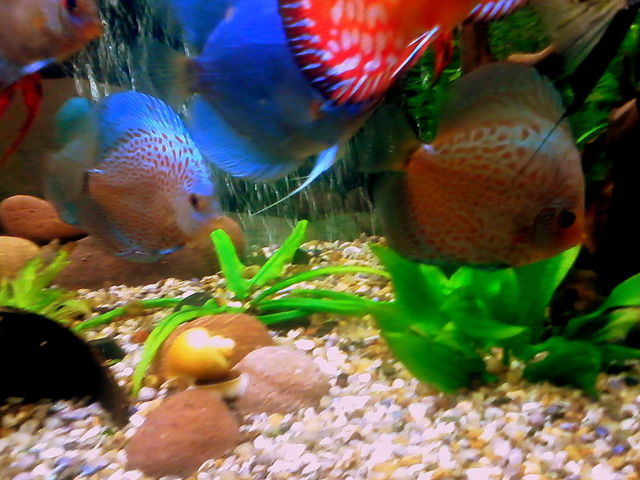 Девет големи дискуса,два много малки,осем скаларии,пет сае,6-7 анциструса и едно малко  стуризомче.