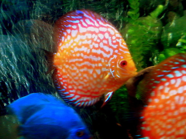 Храня с домашно приготвена кайма (всеки път различна) по три пъти на ден и по веднъж тетра дискус и тетра про колор.