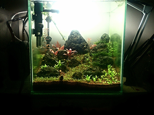 Предишните растения и корени ги дадох на приятели,елеохарис мини със сигурност ще го ползвам отново при следващото преправяне на кубчето,много готино растение за полянка е.Бутане със сигурност ще има,засега ше изчакам още малко да вида как ще тръгне,така е от около месец.