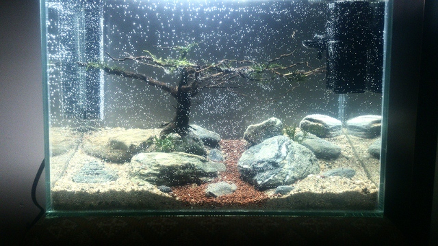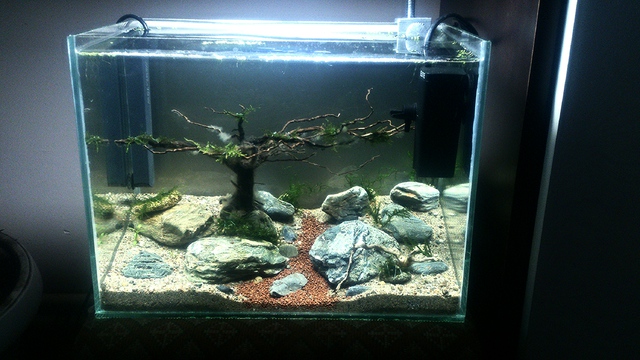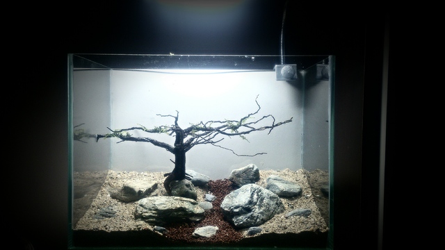 Предстои старт на едно 12л аквариумче,приблизително така мисла да е подредбата,малко още ще се доразмести тук там
