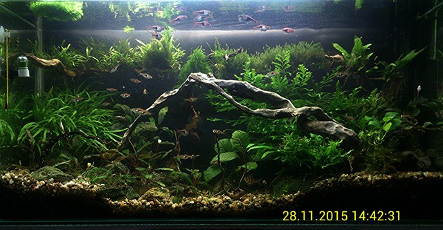 Така както си го задигнал от двете страни,започва да ми наподобява на речно корито и надвиснали над него храсти,папрати и дървета *BRAVO*Много ми харесва.Мислил ли си да развиеш аквариума в тази посока(речно корито)Ще ти се получи много добре *DRINK*
