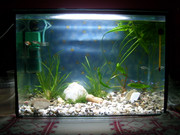 Ето го моят аквариум.Знам, че е може би наи-грозния но ми е първи и те първа ще има промени,докато накрая не получа желания резултат! Рибите са:6 неонки,3 гупи,2 плати,2 червени тетри,2 даниота-зебри,2 черни неона и 2 сомчета-албинос!Не знам дали са съвместими рибките,но кагато питах в магазина казаха че са!Акваруима е 40л,растениата са изкуствени-просто за интериор са сложени.