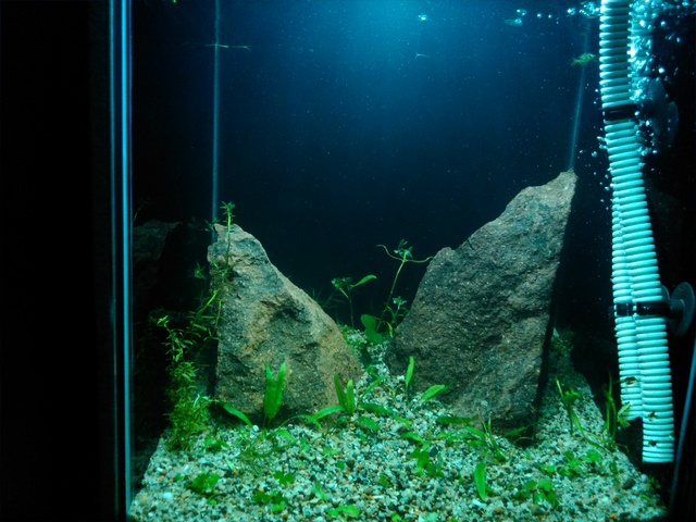 Грунда е речен пясак 2-5 мм сега съм  с вътрешен филтър. Подавам СО2  тем.25 градуса, 60 литра е аквата 40д 36ш 50в. Осветление е енергоспестяващи 2 бр 6400 к 32 вата. Торя с PTD-Healhy Plants.