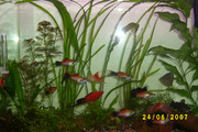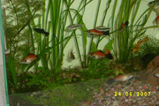 Хубав ти е аквариума,само да вметна (не се засягай) че неоните са стадни рибки а аз преброих точно 2 бр. според мен трябва да се спреш на някой вид за да не пренаселиш аквариума,но избора си е само твой.  *DRINK*