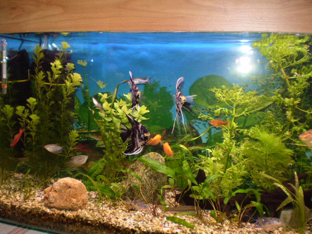 Тези треволяци отзад на фона ли са?Нещо не ми се връзват,струва ми се,че само синьо ще е по-добре.Иначе аквариума ми харесва. *THUMBS UP*От мен толкова.Нека се искажат по-вещите в тази област.