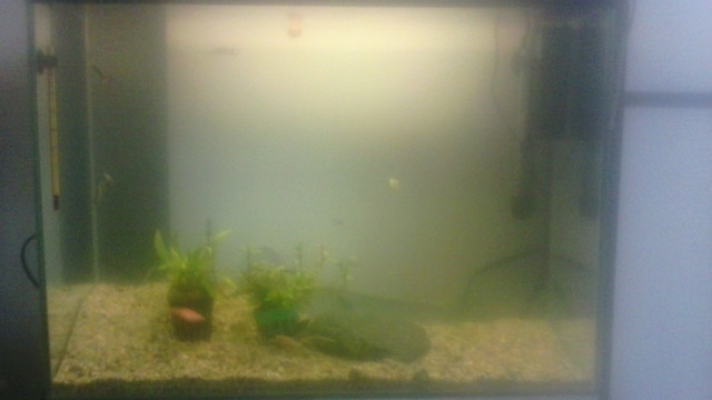 Рибите стояха в 15 литра аквариум 2 дни и имах два варианта - да ги отровя или да ги шокирам от смяната на водата. Напълних големият аквариум с чисто нова вода (дехлорирана) и сложих и 2 литра от малкия, не повече, защото там е било фрашкано с амоняк (макар и да не съм ги хранил докато бяха на общежитие). На едното данио там му отиде върха на опашката. Положението беше ужасно. Тъй като почнах всичко отзад напред по начало, ми се наложи да направя много грешки умишлено, защото вече имах куп риби...