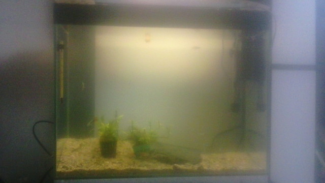 Рибите стояха в 15 литра аквариум 2 дни и имах два варианта - да ги отровя или да ги шокирам от смяната на водата. Напълних големият аквариум с чисто нова вода (дехлорирана) и сложих и 2 литра от малкия, не повече, защото там е било фрашкано с амоняк (макар и да не съм ги хранил докато бяха на общежитие). На едното данио там му отиде върха на опашката. Положението беше ужасно. Тъй като почнах всичко отзад напред по начало, ми се наложи да направя много грешки умишлено, защото вече имах куп риби...