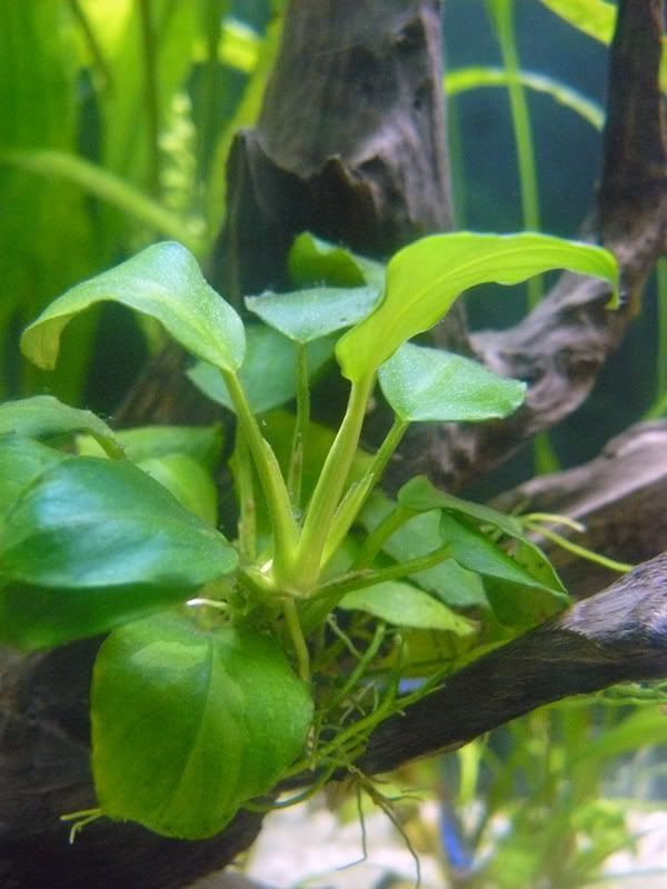 Не знам какво съм си втълпил или съм се влюбил в анубиаса да е в някой ъгъл преден и по-скоро на малката страна по средата.  Така тропосан на корена не ми харесва лично на мен. И аз искам да хвана някой на корена но за сега се ограничавам с прихващане на камък. Анубиаса  не обича светлината, поне при мен. А и като си разпери листата и засенчва останалите около него.