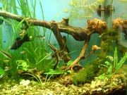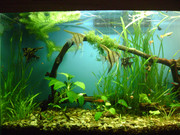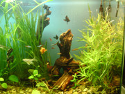 Ето и моя аквариум след днешната добавка,корена с яванския мъх отдясно...