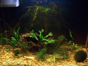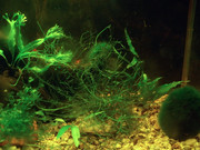 Ако питаш за яванския мъх, като го взех беше доста малко и съм го вързал на камък но бързо дръпна на дължина,сега ще видя дали ще се сгъсти, ако на се получи мисля някой ден да го подстрижа. Имам в един 10 литров малко "паунов" и "огнен" мъх и тях чакам да се разрастат! Имам доста малки скаридки, но не смея да преаранжирам в момента.