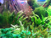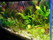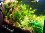 Аквариума има следните размери  80/45/70/ Съответно Д/В/Ш. Ползувам старата вода от предния аквариум 1/2 + нова  .CO2 мая +захар.Осветление 3 ХТ4 на 20 вата едната е малко по дълга и е 22 вата. 2ХТ4 на 9 вата. 2 Х18 вата. Предстои ми да добавя още една Т4 и 2 броя на 18 вата.  Една вътрешна помпа на SUN SUN 1200 Lt/h  и една на 240 Лт/h .  Не съм още започнал да торя. Нека се съвземе аквариумчето.