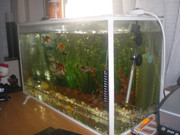Етова е моят аквариум тои е приблизително 70 литра, обитателите му са
