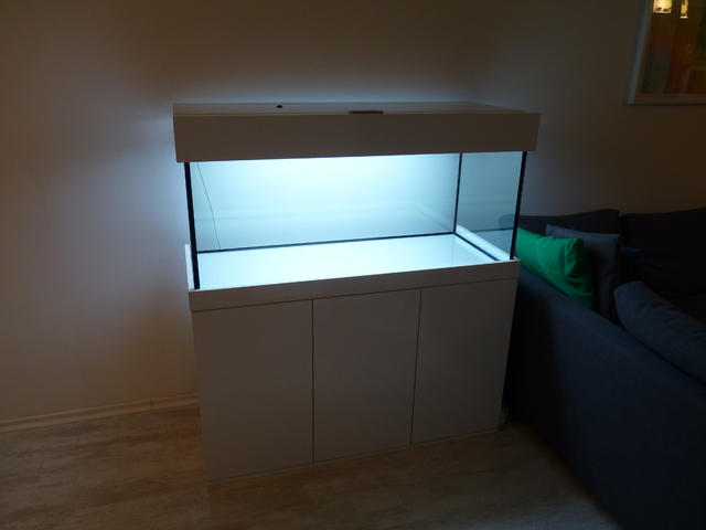 Шкаф: Също е изработен от antuni, с три отделения, пуш бутони, капак за аквариума от същия материал с двойно отваряне. Между шкафа и аквариума има подложка от 3 мм Depron. Споменавам го, понеже ми прави впечатление, че често се случва хората да забравят да слагат такива подложки и понякога стават бели.