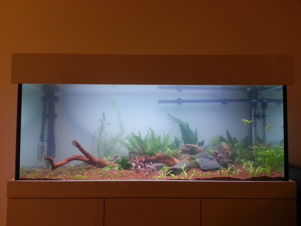 Набързо за акваристкия ми опит - първия ми аквариум е по-скоро детски - още през 2005 година, когато бях на 15. Беше сто литра и направен с почти никакво четене и адски много бързане. Сума ти рибки набутани вътре, със сума ти растения, 90%-ни смени на вода, много водорасли, вътрешен филтър, осветление с нажежаема крушка. Химия, тестове, торове, такива неща изобщо не съм се и замислял да ползвам. Бях на мисленето - рибите живеят във вода. Имат вода, значи са ок. Водните растения живеят във вода. Имат вода, значи са ок.  :duvar: