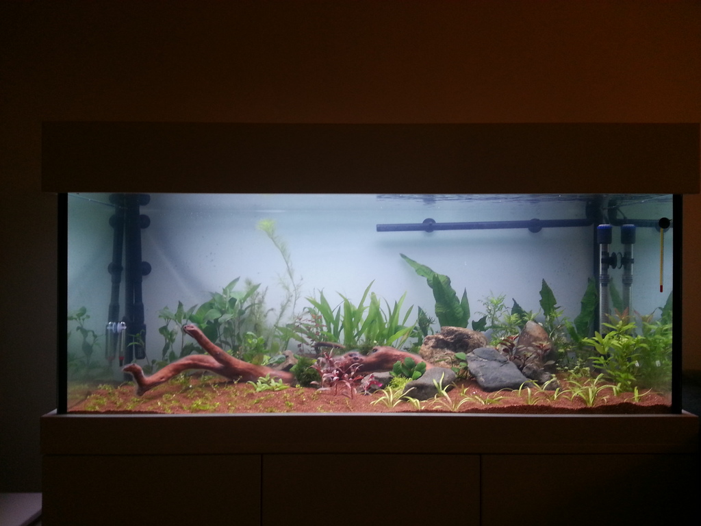 Поздравления ! Флейтата няма да е зле да я пуснеш по късата страна на стъклото насочена към другия край под 45 градуса към повърхността. Така по добре ще раздвижва водата , а ако можеш да я сложиш до всмукателната тръба да прави U образно движение водата ще е супер. Един тъмен фон и е бомба ;)
