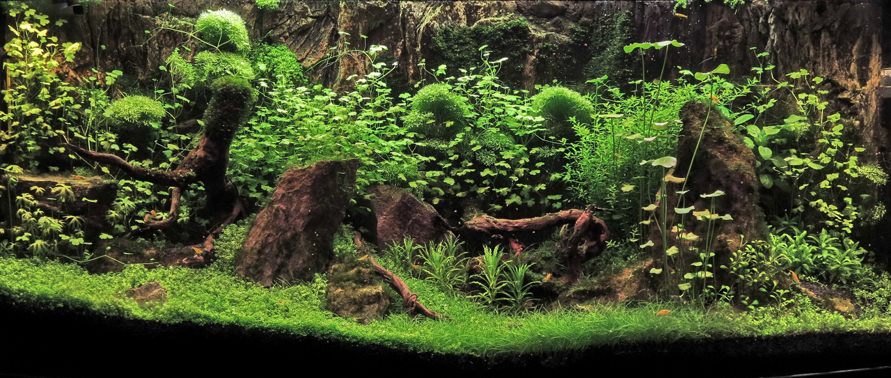 Замених глосостигмата в десния край със Staurogyne repens и Micranthemum "Monte Carlo", но му трябва още развитие. Но като цялостен облик започвам леко-леко да се доближавам до първоначалния си замисъл... :-)