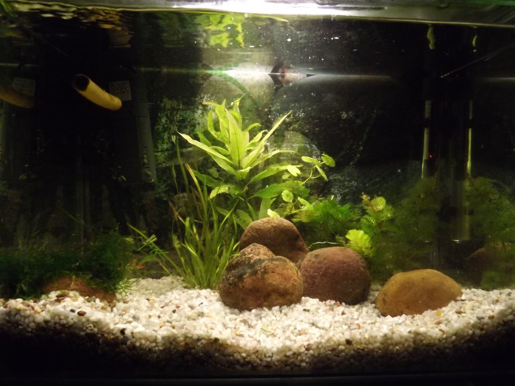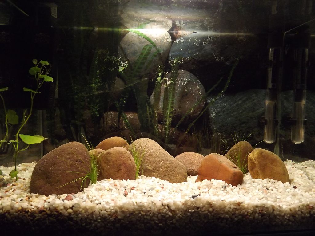Закрепи анубиаса между камъните,мисля че ще се получи добре,а камъните нека си стоят ама ги пораздвижи леко. *THUMBS UP*А и четвъртия камък от ляво на дясно мисля че ти е излишен.