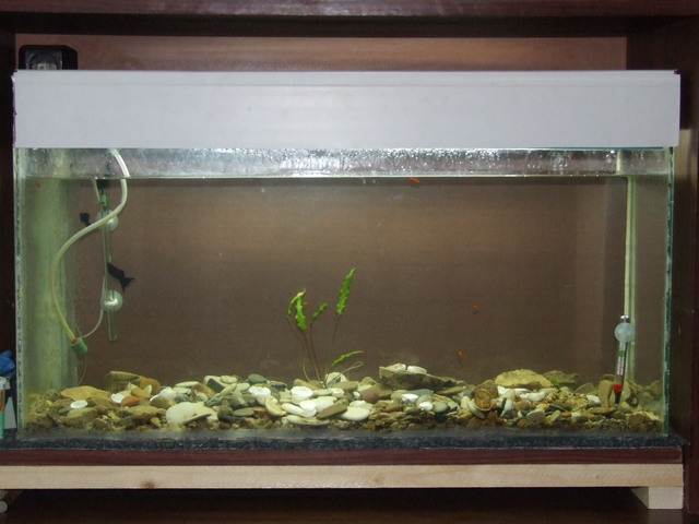Според мойте наблюдения аквариумчето ми се развива добре (да чукна на дърво). Засега нямам разболели се рибоци или някакви проблеми. Малко са ми смесени елементите с речни и морски, но идеята първоначално ми беше да си правя някакво по- натурално гьолче :)