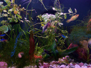 След като няколко пъти ми умираха рибките, най-накрая успях! Вече 2 месеца си живеят спокойно, растат и дори имам ново поколение гупи. Растенията бяха изгоряли малко от токсивек, но и те почнаха да растат. Аквариума е 70литра, имам 10 неона, 4 гупи, 4 молинезии, 3 малки сомчета и 1 голям, охлювчета и новородени гупи, които скоро ще трябва да ги преселя. Ето снимки: