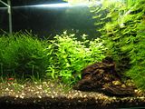 Хигрофилата, валиснерията и бакопата растат доста бързо за разлика от кабомбата която не мърда на височина. Алтернантерата също не мърда, дори няколко корена изгниха и се наложи да ги изрежа и засадя наново. Водорасли за момента, като изключим тези по предното стъкло и няколко листа на анубиаса и алтернантерата, може да се каже че са няма.  От друга страна и хигрофилата и бакопата пускат много мустаци, поради което започнах торене. Може би е твъерде рано, но ще видим.