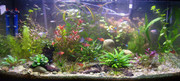 От растенията отново имаше пришълци и изгонени, но такъв е животът. Както се вижда, лесните растения си вървят, а трудни няма. Имам няколко вида водорасли - основният е един много шибан твърд вид, който се лепи основно по листата на всички растения, мисля че, Don Misho го имаше същия в един от неговите аквариуми, което е разбираемо, защото сме градски и ползваме една и съща твърда вода. Нишковидните присъстват, но не ме дразнят особено.