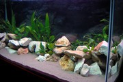 Виждат се и някои от първите обитатели: 6 бр. Metraclima zebra OB (точно като реших да снимам се скриха в камъните).