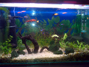 Направих някои промени. Сложих нови растениа. Смених и фона. Имам обаче един сом Callichthys и постоянно ми изкоренява растенията. Май ще го махам. Извинявам се за снимките с телефон са. Утре вечер като наново засадя зеленчука ще направя по-качествени снимки. Какво мислите за аквариумчето?