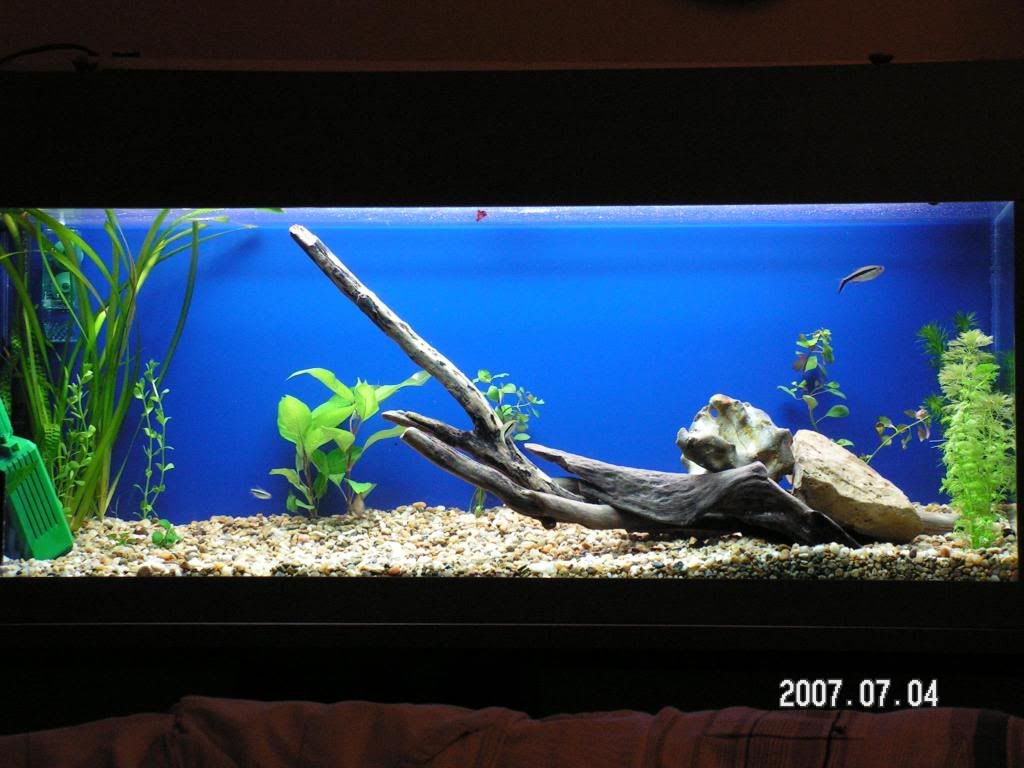 Наскоро си сглобих аквариум. Обща вместимост 240 литра, полезен обем вода около 210 литра. Напълних го, стартирах го с бактерии на Сера, сложих му малко растения от Биг Гонзо и гледах как всичко си върви нормално.