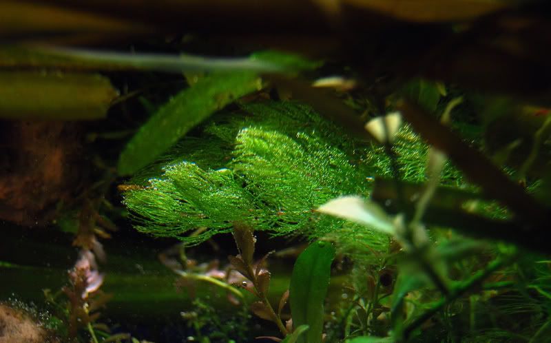 Аз захващам топките водорасли с пинсета, но кофтито е, че част от тях излизат заедно с мъха. Много здраво се захващат мамка им.