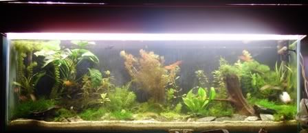 Верно е,че има известен дисбаланс,но не ми се разделя с някой растения,защото мисля след време да направя по-голям аквариум.Колкото до потдръжката съм направил една голяма  стратегическа.Повечето ми растения са бавнорастящи ,а аз ги мъча със силно осветление заради опитите ми да направя полянка.