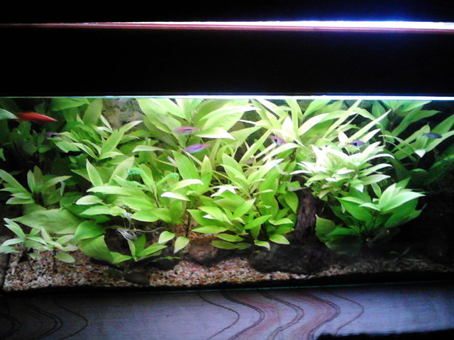 Здравейте на всички :) След близо месец приготовления днес пуснах първите си 2 обитателя в чисто новия си аквариум, малко ми е кофти, че ги мъча рибките така /2 хелера/ но са тестови и пробвам водата, ако не им се случи нещо до 2-3 дена започвам обилно да заселвам както с рибки така и с растения. Та 2 думи за аквариума, 95/30/40 (д.ш.в.) Имам 2 лампи GROLUX по 18W