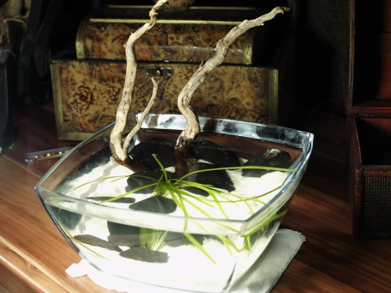 Здравейте,наскоро смених жилището,смених и стария аквариум и засега се получи ето това.
