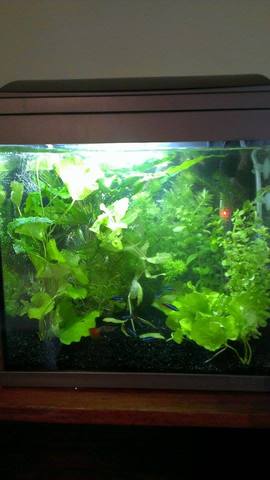 Като цяло повече рибки за сега няма да слагам никъде , малките са си отделно и растат , а неоните са 8 за сега и за напред също. Преподредих нещата още преди малко най-дългите растения най-отзад,средните по средата и най-късите отпред.Интересно ми е само кое ще се хване и кое не,загледах ги че се събират зверски много балончета CO2 по листата на всички растения.