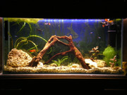 Уникален корен!Махни камъните,смени фона с светли син,засади повече зелени растения на заден план и малко по-малко ще се пооформи нещо и от там ще може да прецениш какво още му трябва.Може някоя криптокорина до корена да сложиш,и червените растения да минат на зад,защото стават доста високи. *THUMBS UP*