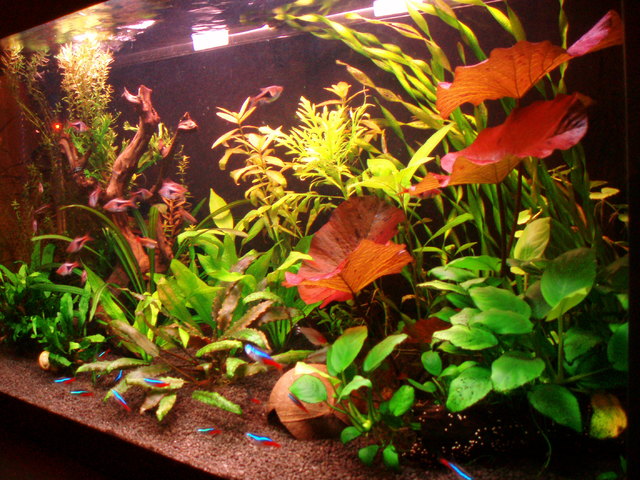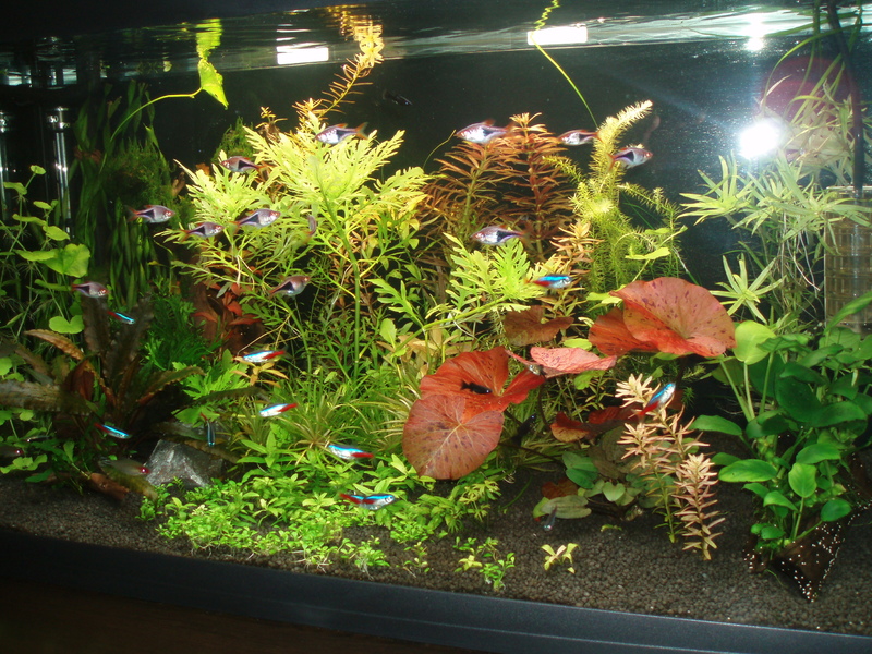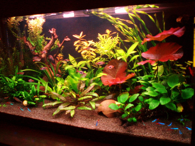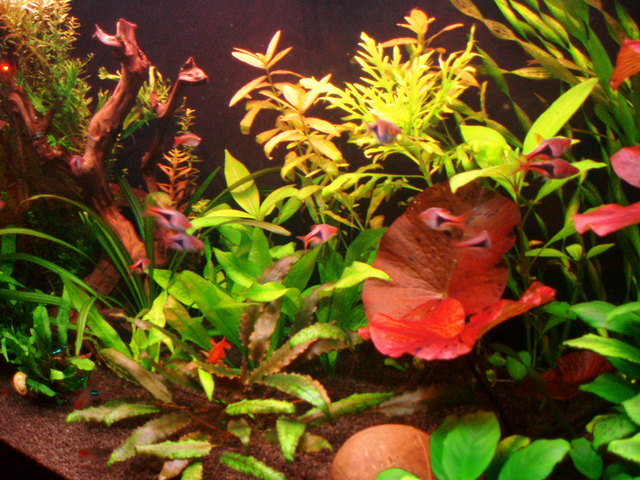 риби: данио-6,неон-16,сае-2,анцитрус-2 ото-1,бети-2,леери-2,титея-3,родостомус-3 и ред чери-незнам колко