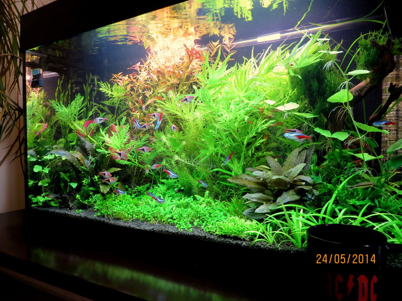 Такива като мен, начинаещи, само могат да се възхищават на такива аквариуми! А чашата на AC DC стои идеално. Само дано вътре да няма чай, че от него се люпат надписити, не им понася чая!  *spam