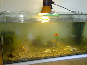 Така изглежда аквариума ни сега,след помощта на Лора,нейните растения и новия грунд.Михме го колкото можем,сложихме го в аквариума  и както виждате водата е доста мътна.Чакаме да се избистри,ако не ще я сменяме.