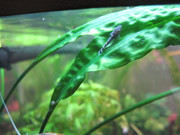 В аквариума всичко отлежава без особени промени. Пиша обаче да се похваля: Вече съм горд собственик на малки анцитрусчета. Малките са между обикновен мъжки и воален женски. Вече са на около 2-3 дни след излюпването, мъжкият продължава да бди над малките, голям звер се оказа щеше да счупи черупката на една ампулария дръзнала да се появи на входа на пещерата  *spank* така я блъскаше в един камък, че чак се притесних!  *CRAZY*. Искам да направя снимки, но е много трудно защото пещерата се намира между камъни и корени и за капак отпред една криптокорина вендти! Живот и здраве като налазят извън пещерата ще щракам.