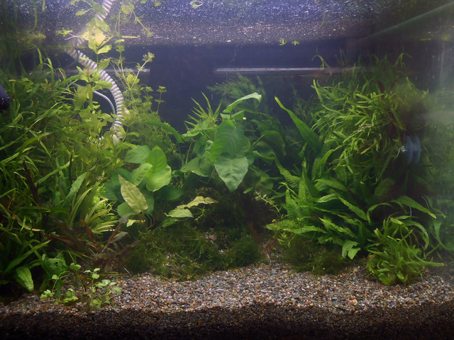 Обаче мисля, че трябва да има базови растения - нерпетенциозни. Те подържат екологията (химията на водата). С тях се почва, като пионерни растения. А след като се развие екосистемата, се добавят другите, а базовите растения може да се намалят много, но не се премахват напълно. Моите базови растения са: Роголистник, Лимнофила сесилифлора, Цератоптерис (за малко да забравя дензата). Освен това мисля, че по-голямото разнообразие от растение, прави екологията по здрава, защото когато едни вещества в аквариума се повишат, това повишава растежа на едни растения, които възстановяват равновесието, а когато други вещества се повишат - други растения дръпват.