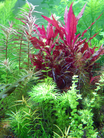 Hygrophila polysperma, Hygrophila difformis, Ludwigia palustris "green", Limnophila sessiliflora, Shinersia Rivularis, Ceratophyllum submersum - роголист, Cryptocoryne Venditti Brown, Cryptocoryne affinis,  Anubias  var. barteri, Echinodorus amazonicus