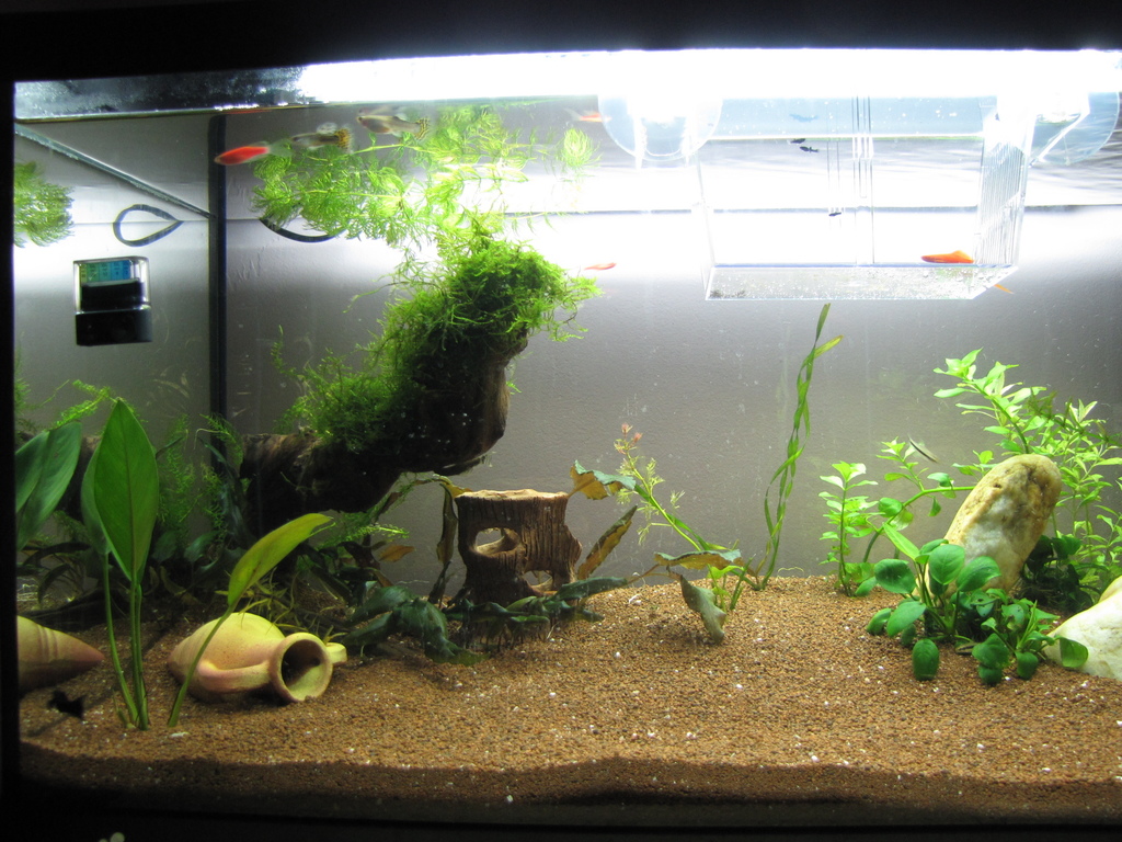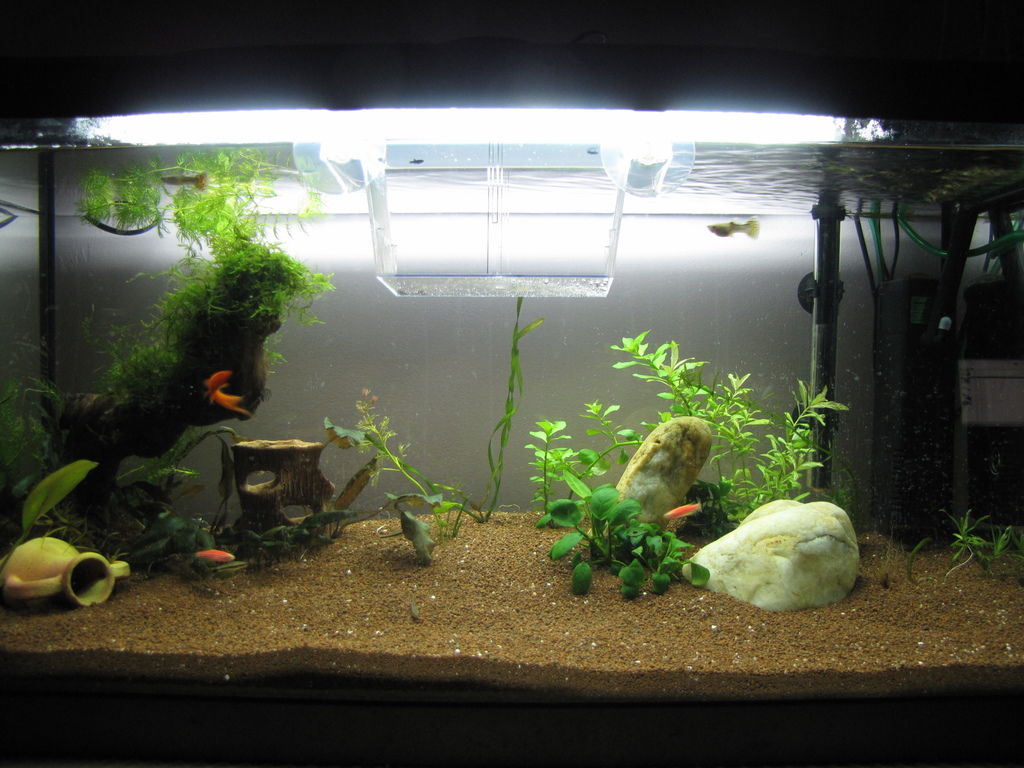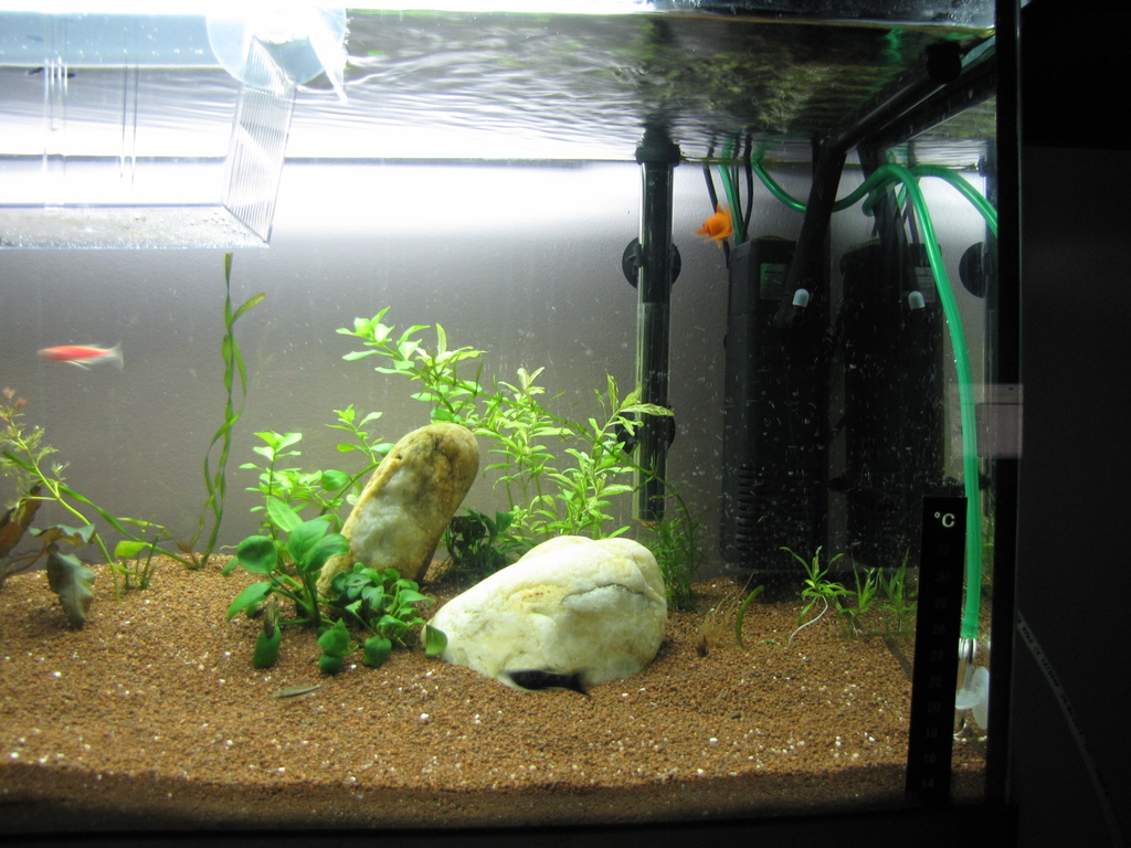 Малко е рано да показвам още аквариума, понеже тепърва ще ми се редят идеите в главата като нов в хобито, но пък реших все пак да пусна 1-2 снимки, та може и да получа някоя друга градивна критика или съвет, които да ми помогнат по-бързо да навляза в хобито, пък и сметнах за добре да си водя нещо като дневник. Това би ми позволило да открия евентуални грешки, които съм допуснал, ако нещо в бъдеще се скапе.