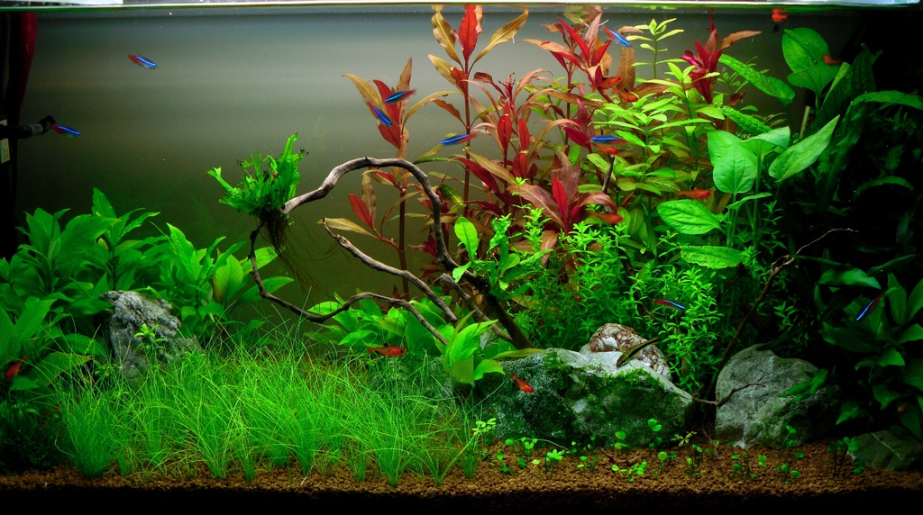 Здравейте, отдавна не съм качвал нищо. Значителни промени няма! Само предния план е друг. Уморих се да чистя елеохариса от водорасли  :-D, та реших да го сменя. Дайте съвет как да разчупя малко лявата част, че много еднообразно май стана?