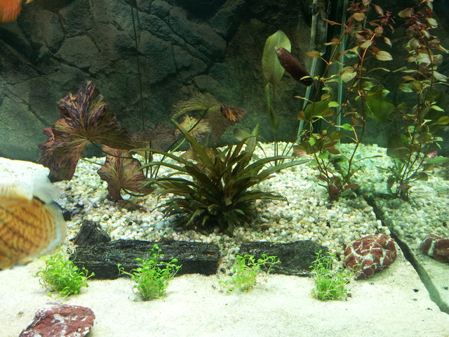 Красив аквариум с красиви дискуси колега. Ще има ли някакви растение в задните ъгли?
