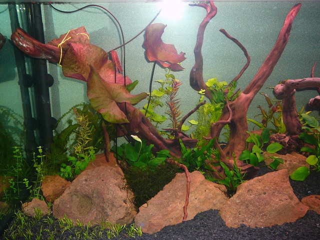Много хубав аквариум, жалко за лошите снимки. Опитай без светкавица, вечер на тъмно само с осветлението на аквариума.
