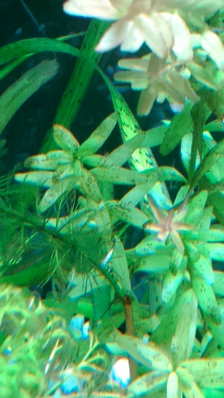 По грунда има водорасли,по растенията някакви черни точки, на лимнофилата и кабомбата им изгниват листата от долу-нагоре и остават голи,на лимончето листите му са като нагризани и изгниват също  :-(. Чудя се от осветлението ли е,от това, че не торя и не подавам СО2 ли може да е ? Просто в момента съм в един тунел, в който не виждам светлина  :'(.