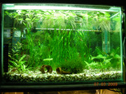 Това е втория.50л осветление 2*18w silvania agwastar,вътрешен филтър 450л/ч ,грунд промит речен пясък смесен с бяла мозайка,в него освен растенията гледам два анцитруса и другото е само гупи