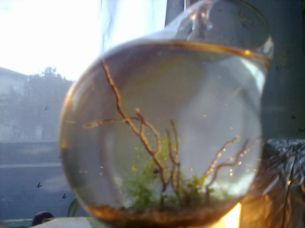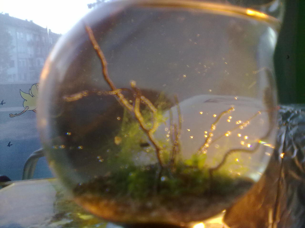 Да крушка е, в нея има много тънки коренчета 3 много дребни стръкчета хемиантус и мъховидни водорасли, да водорасли  :-D