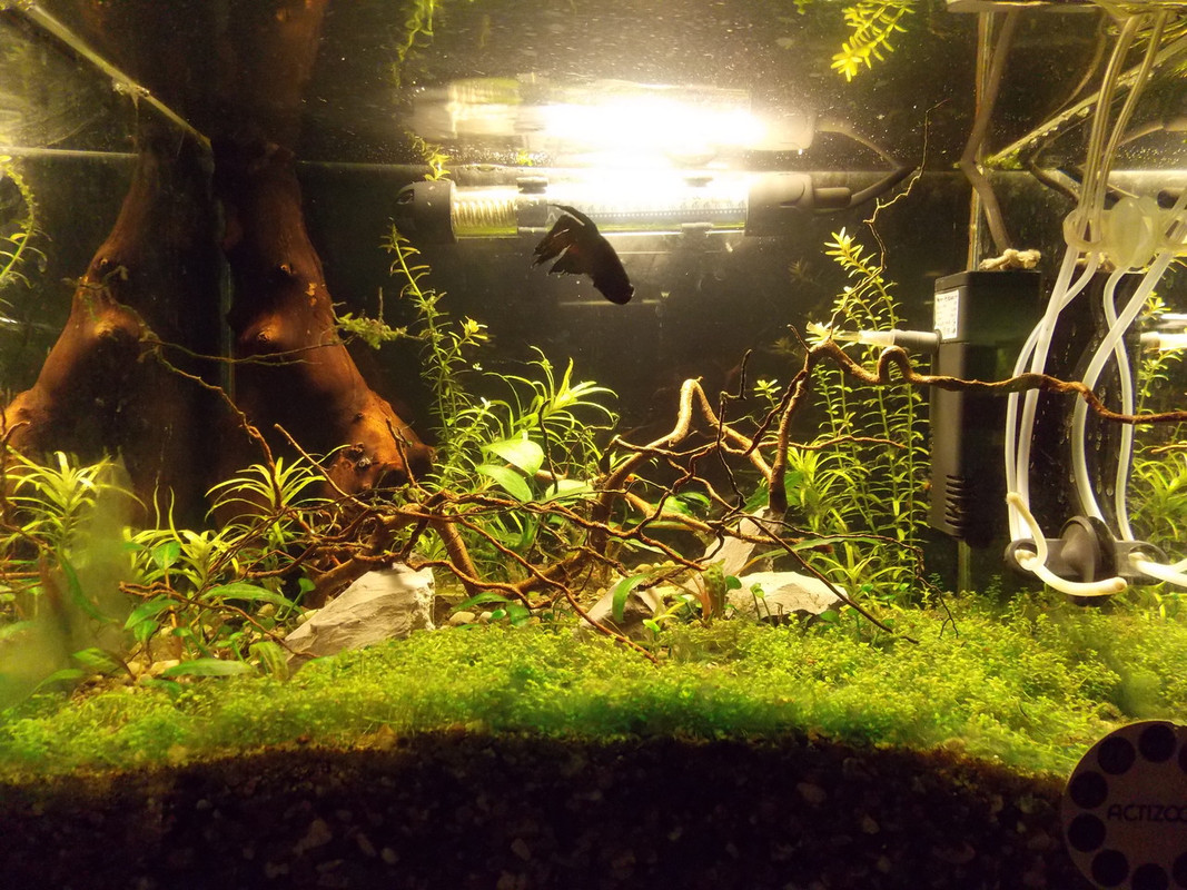 Аквариума беше разместен изцяло на 4.1.2014г. грунда и филтрите са си същите, мисля че мога да пусна нови обитатели.Не съм избрал точно какви ще мисля между два варианта.
