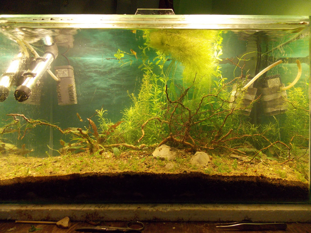 Аквариума беше разместен изцяло на 4.1.2014г. грунда и филтрите са си същите, мисля че мога да пусна нови обитатели.Не съм избрал точно какви ще мисля между два варианта.