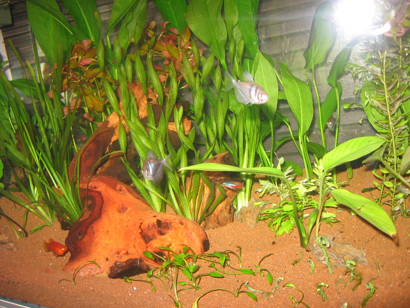 ето един общ изглед...пак се вижда как прозиира..дано да се развият растенията. Иначе..сме заплашиха вкъщи, че никакви растения за аквариумите повече! :karamse: